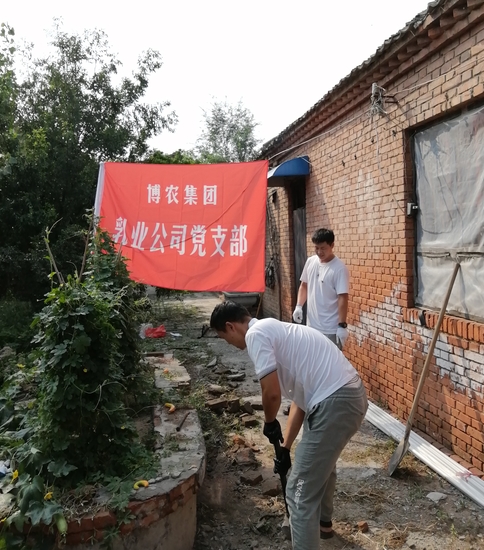 貧困戶魏澤美家是博農(nóng)乳業(yè)公司對(duì)口扶貧幫扶戶,公司黨支部了解到魏澤美家中廁所年久失修,給其生活造成不便的實(shí)際情況,經(jīng)過研究,決定發(fā)揮公司支部黨員水電、建筑等人才優(yōu)勢(shì),組織黨員直接參與其廁所整修工作。30日下午,乳業(yè)公司黨員12人克服天氣炎熱、工作環(huán)境條件復(fù)雜的多重困難,全身心投入到廁所整修工作中,有的撤除房頂,有的焊接梁架,有的開挖水溝,有的連接電路,用整整一下午時(shí)間,完成了房頂撤除更換、連通水電的任務(wù),幫扶工作受到貧困戶魏澤美的交口稱贊。